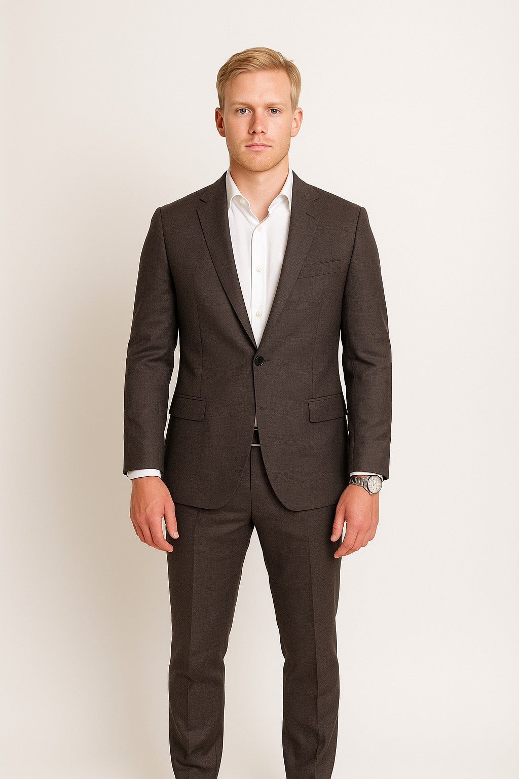 Braun-melierter Dreiteiler mit Strukturgewebe