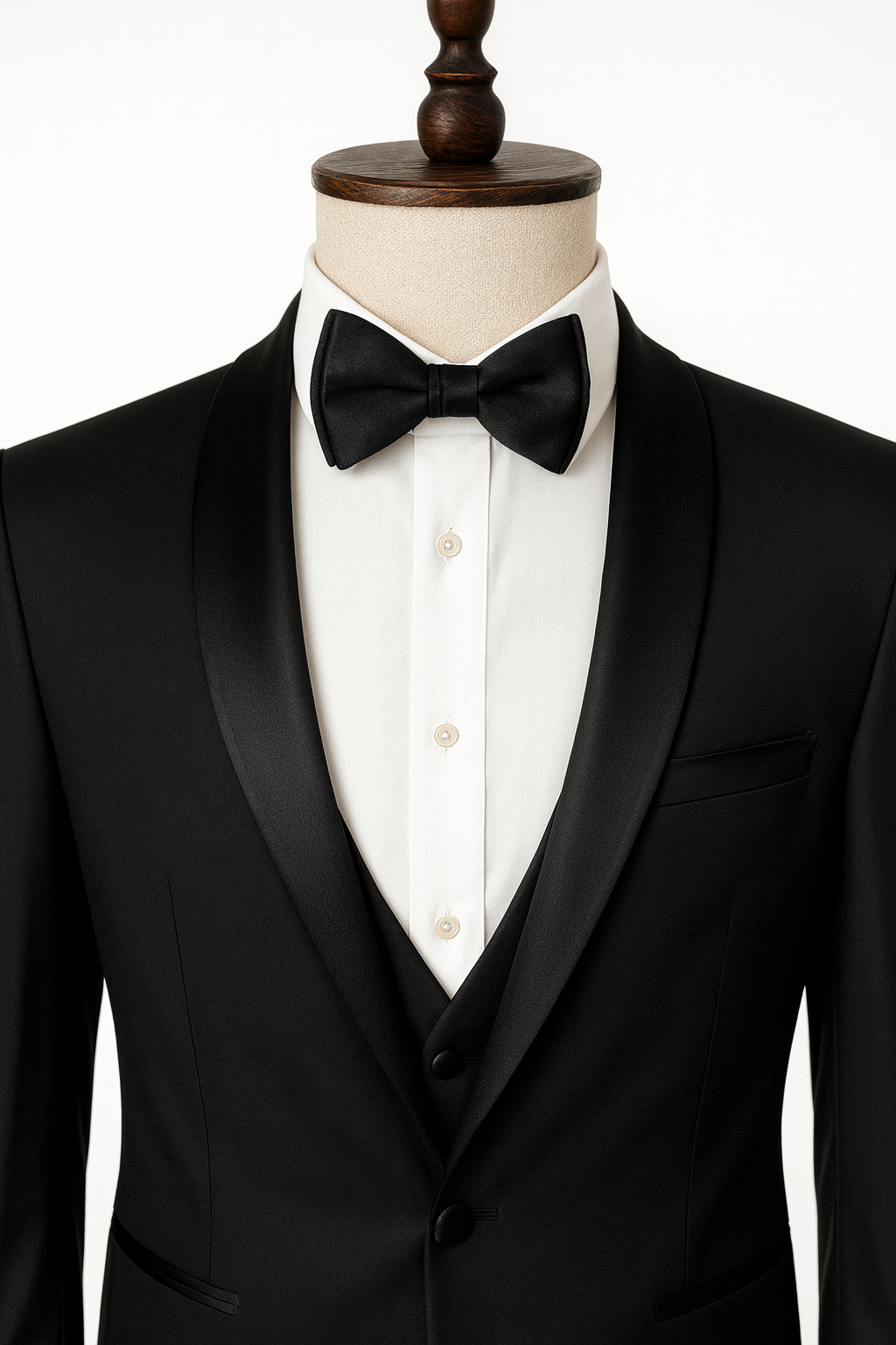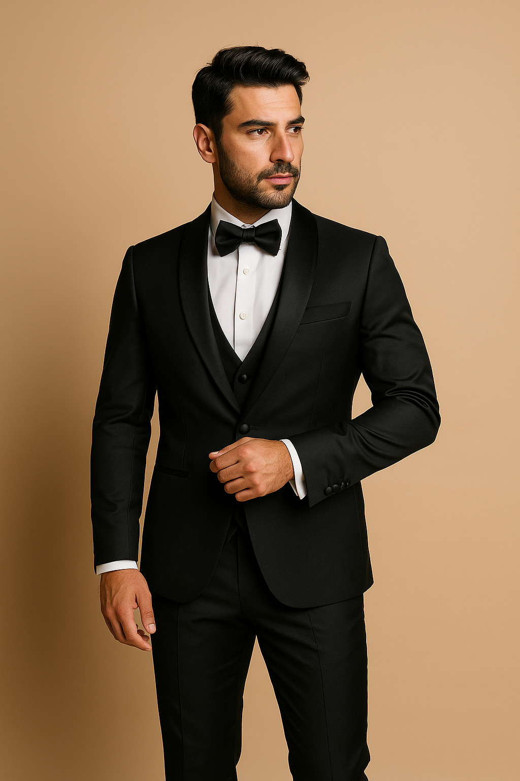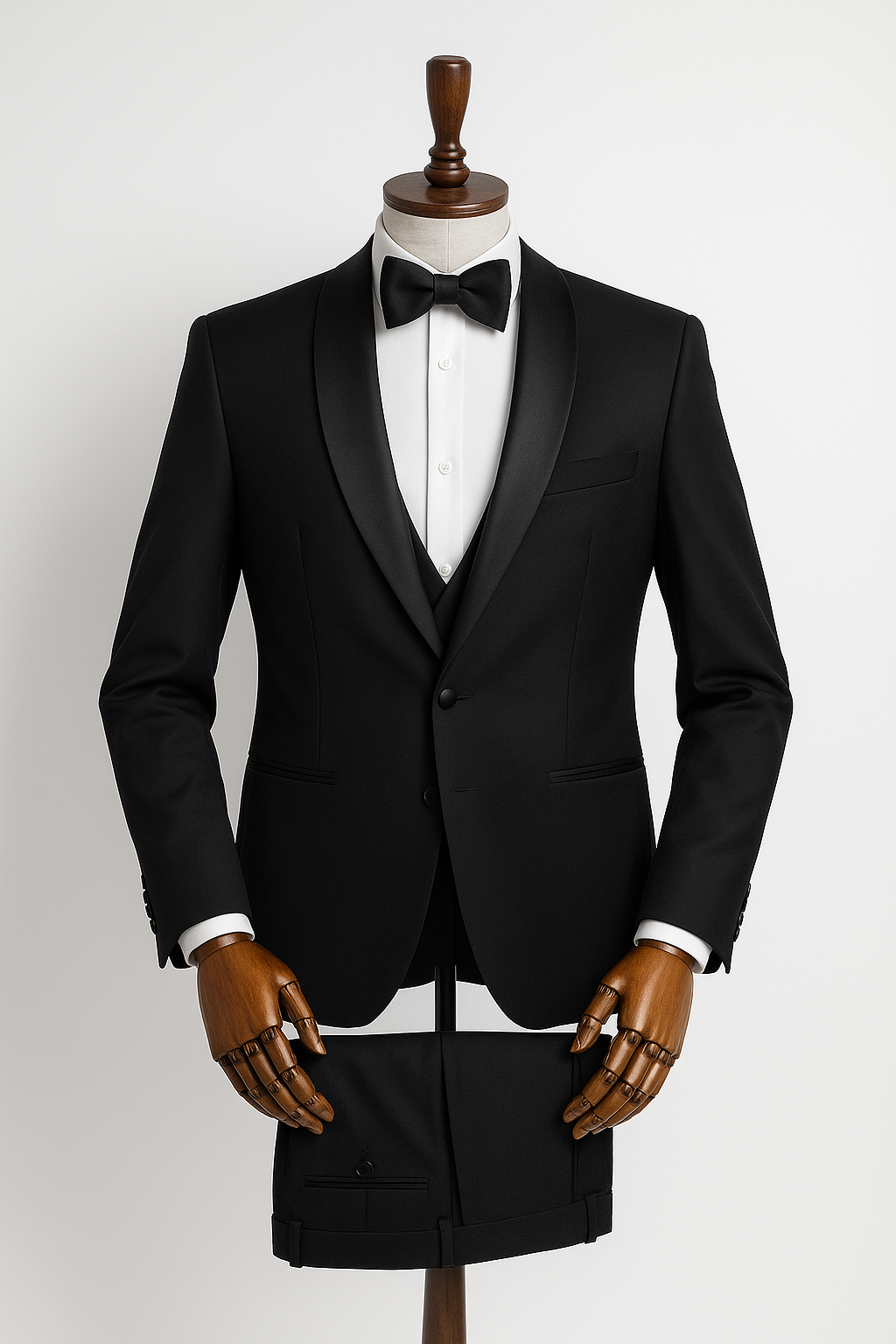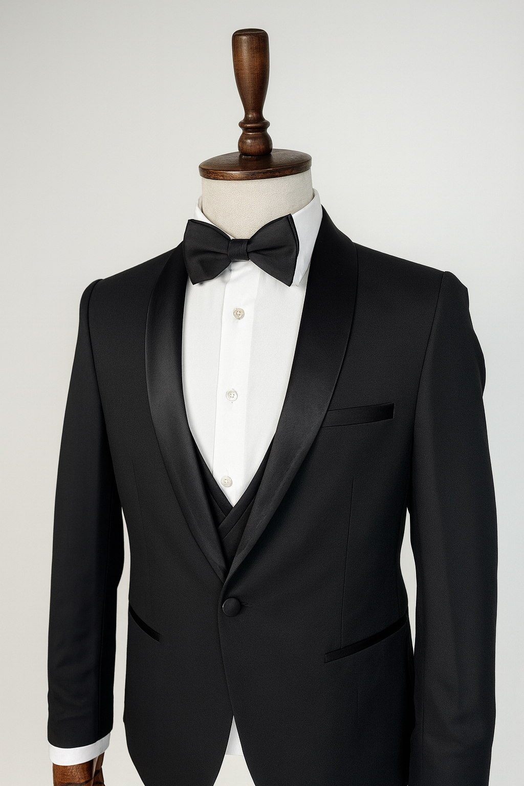 Zeitlos, elegant, unverzichtbar: Dieser schwarze Smoking ist der Inbegriff von Stil für jeden festlichen Anlass. Das 3-teilige Set aus Sakko, Weste und Hose wird mit passender Fliege geliefert und überzeugt durch seinen modernen Slim-Fit-Schnitt sowie eine edle Verarbeitung. Ob Hochzeit, Gala, Ball oder exklusives Event – mit diesem Smoking bist du immer perfekt gekleidet, zu jeder Jahreszeit.