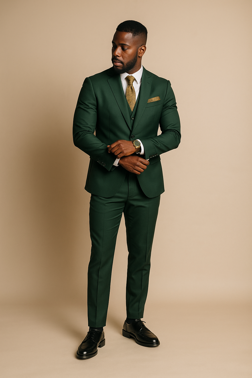 Smaragdgrüner Dreiteiler mit modernem Schnitt