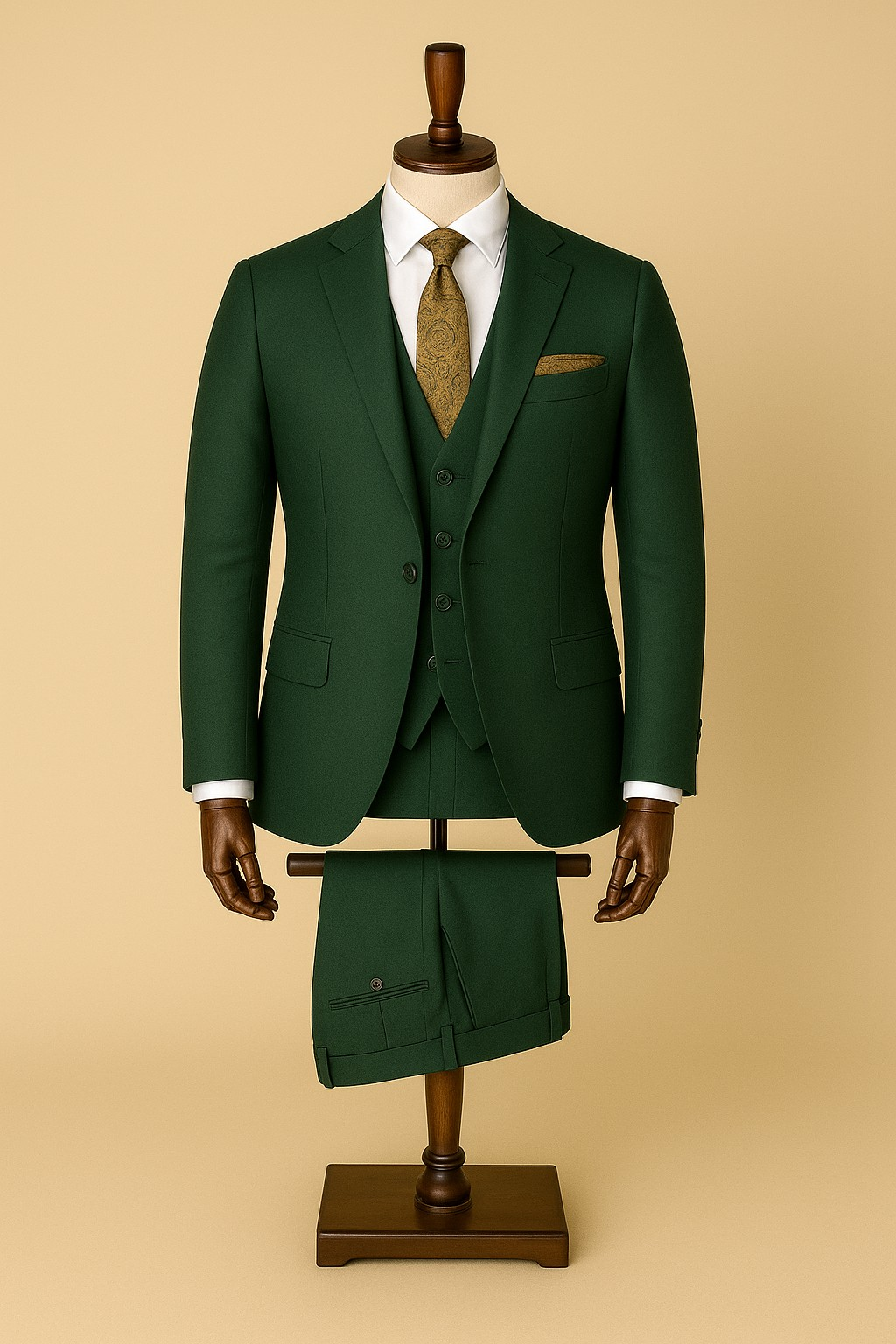 - Smaragdgrüner Dreiteiler – Sakko, Weste & Hose