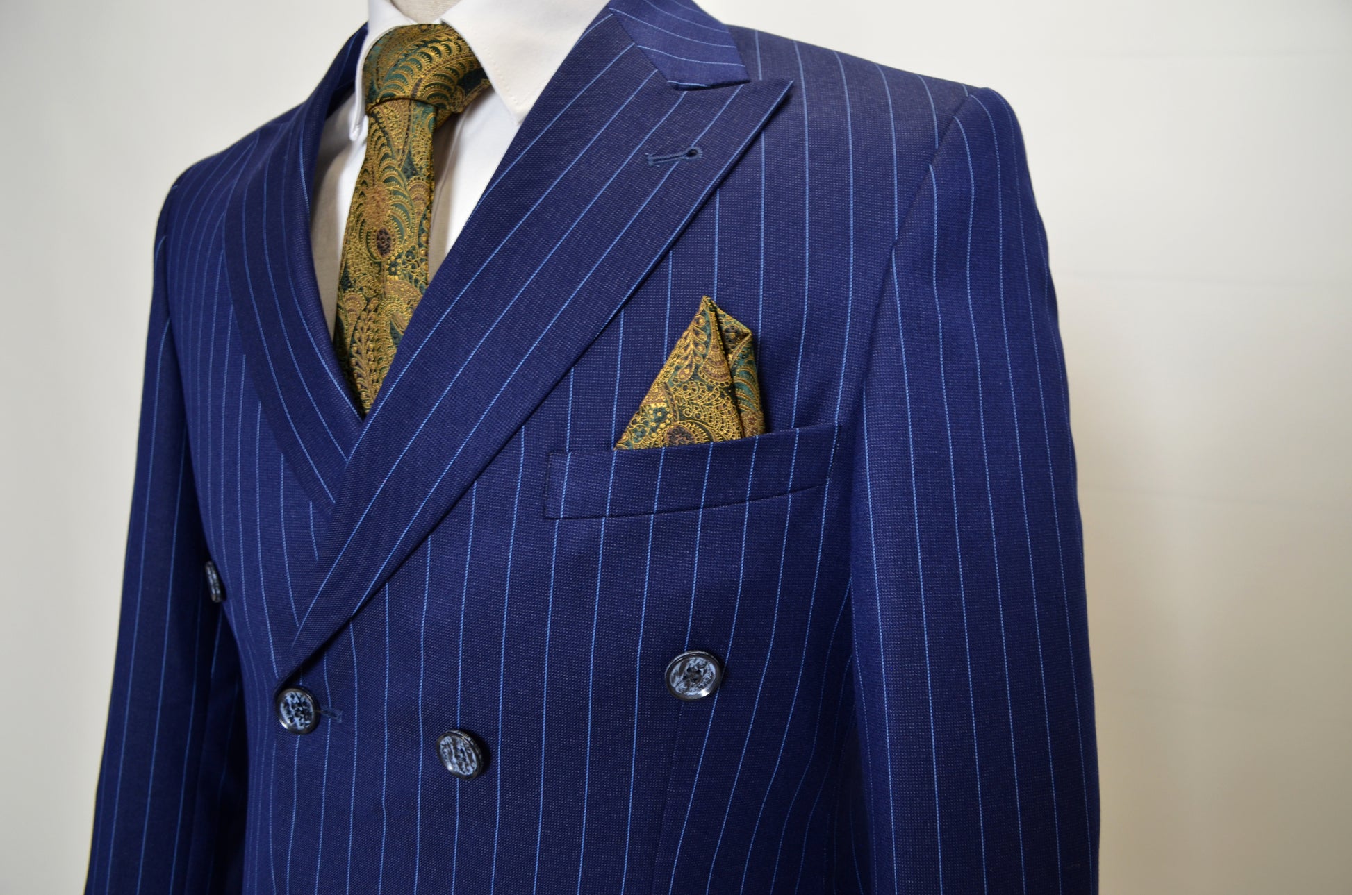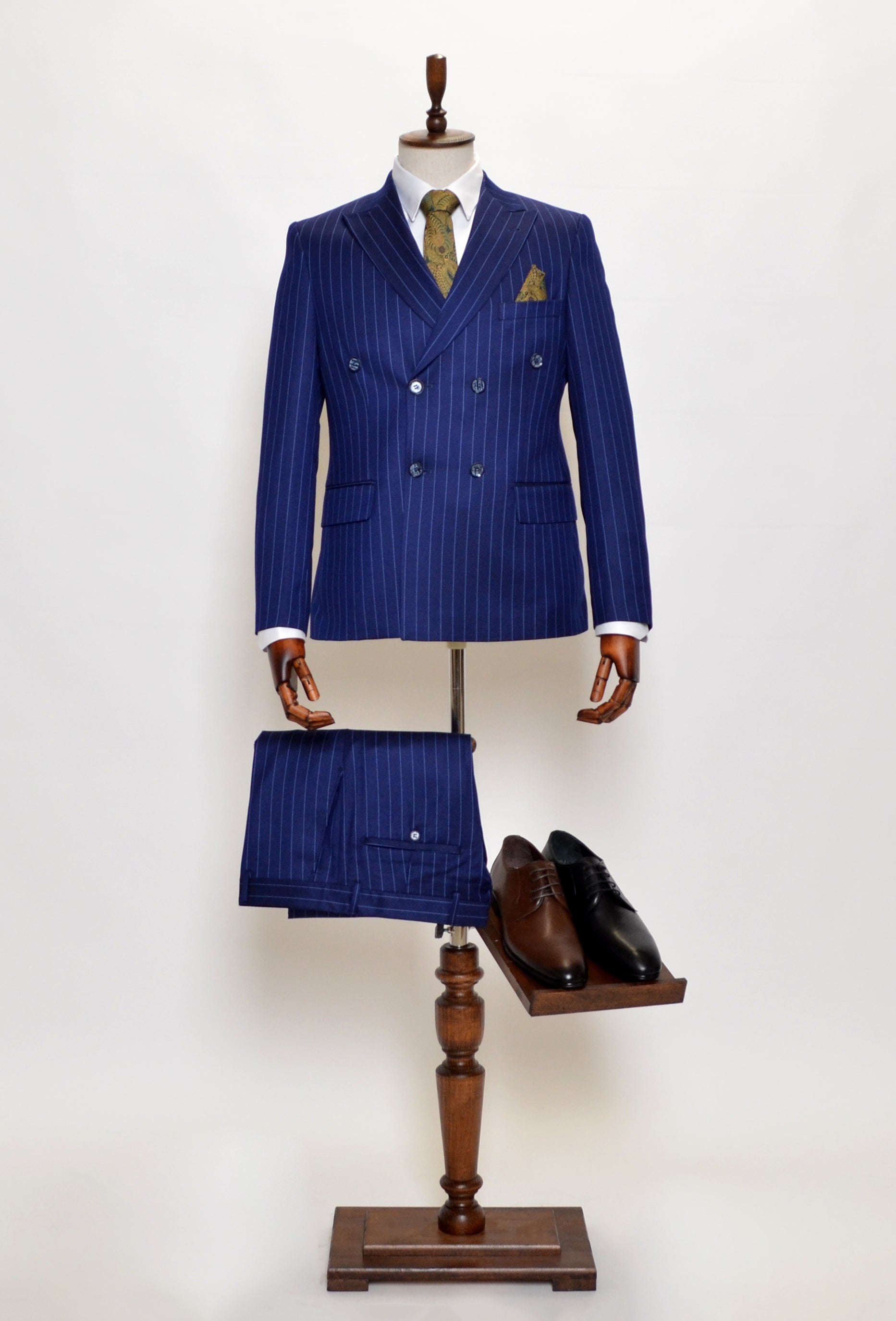 Königsblauer Zweireiher-Anzug mit Streifenmuster für Stil und Eleganz